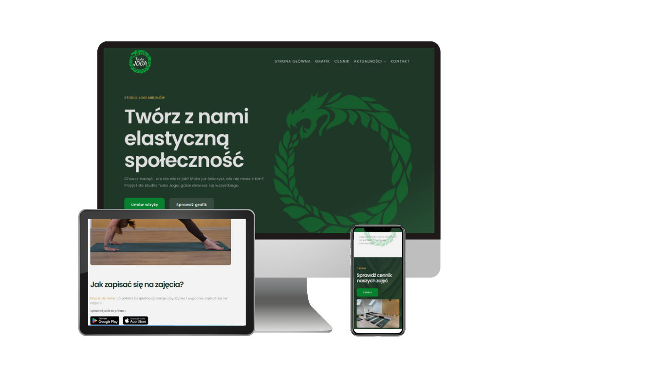 Zadaniem jakie postawiła przed nami właścicielka studia Tada Joga było stworzenie strony internetowej, która w niebanalny sposób zaprezentuje jej ofertę i zachęci klientów do zapisywania się na zajęcia.
